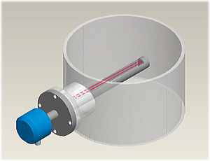 From the same location in the analyzer, the light source and detector are attached to a probe which is inserted into the stack. A mirror installed at the tip of the probe receives and reflects the laser light through the probe, back to the detector.