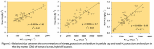 Plants take nutrients from soil for their growth. Nutrient levels in soil and plant tissues give an indication of the nutrient requirements of crop. Folegatti et al (2005) developed a study to evaluate the performance of Cardy ion meters on the determination of nitrate (NO3-), potassium (K+), and sodium (Na+) ion concentrations in soil solution and tomato plant sap for fertigation management purposes. The sodium ion (Na+) is not an important ion for tomato, but its concentration in soil solution and plant sap gives valuable information when using saline irrigation water.