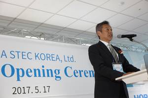 堀場エステックは京都市南区に本社を置き、国内5か所のセールスオフィスと、本社および熊本県の阿蘇工場で主にマスフローコントローラーや液体材料気化システム、真空計測・ガスモニターの生産を行っています。海外は、アメリカと中国に生産・販売拠点、台湾、シンガポール、ヨーロッパ内4か所に販売拠点があり、今回、韓国においては、ソウル市から南に約40キロにあるIT関連の企業集合地域、龍仁(ヨンイン)市に、移転しました。移転の背景は、半導体メーカーでの設備投資の増加により半導体製造装置の需要は拡大を続けています。これにより、半導体製造装置のキーコンポーネントであるマスフローコントローラーの需要も増加をしています。このような需要拡大に応じ、また、お客様からのニーズに迅速に対応するために、クリーンルームの拡張や設備をそろえた社屋を完成させました。