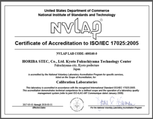 株式会社堀場製作所(以下、堀場製作所)の子会社である株式会社堀場エステック(以下、堀場エステック)の京都福知山テクノロジーセンターにおいてガス質量流量の校正に関し、米国標準技術研究所の試験所認定プログラム よりISO/IEC 17025に基づく認定を取得いたしました。(認定番号: NVLAP Lab Code 600160-0)