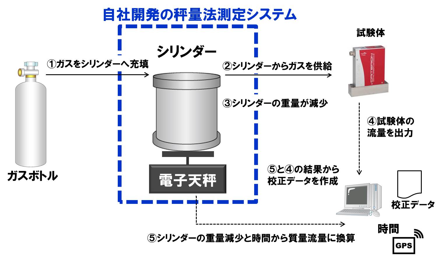 京都福知山テクノロジーセンターにある自社開発の「秤量法測定システム」で認定校正を行った結果を社内の最上位のガス質量流量標準として新たに位置づけることで、堀場エステックの主力製品であるガス流量制御装置「マスフローコントローラー」の正確さをさらに向上させることができます。