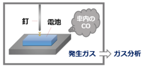 • 車載用リチウムイオン電池の釘刺し試験で発生したCOガスの車内流入の有無を確認したい。