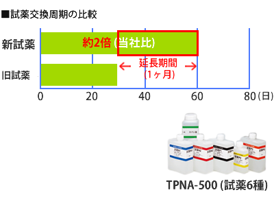 - 試薬交換周期延長 1ヵ月毎→2ヵ月毎(当社従来比2倍)