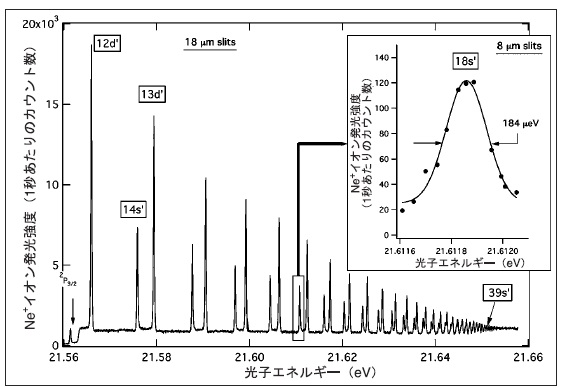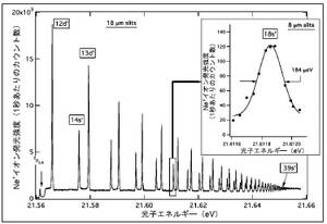 図4 モノクロメータの低い迷光レベルを実証したNe自動イオン化分光スペクトル