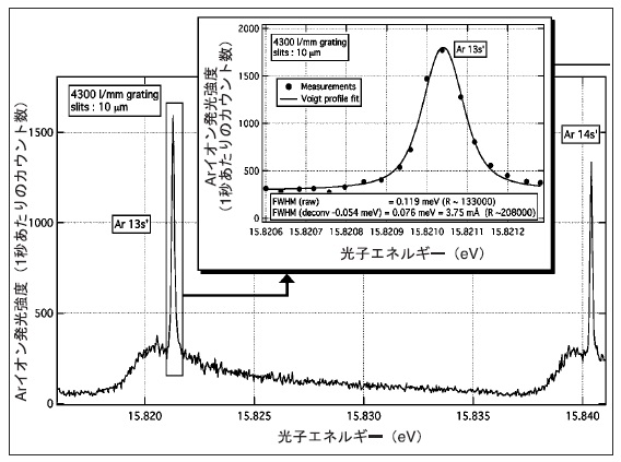 図3 モノクロメータの分解能208,000(λ/Δλ)を実証したAr自動イオン化分光スペクトル