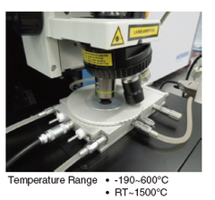 厚みのある試料を測定する場合がある。当社装置に採用している光学顕微鏡BX41*1では,ステージ付け位置の調整ができ,28 mm以下の厚みであれば測定可能である。ローステージホルダ(オリンパス製)を使うと,50 mmの厚みまで対応できる。それよりも大きな試料を測定するのであれば,ステージではなく対物レンズ側が上下する光学顕微鏡BXFM*1搭載のラマン分光装置を選択するとよい。他には,加熱・冷却測定の場合は,光学顕微鏡用の温度コントロールステージ(Figure 6)を利用することができる。