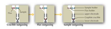 Thanks to this mechanism sample and flux drop independently allowing outgasing of the flux at low temperature prior to the analysis. The benefits are prevention of flux spatter, control of crucible corrosion and optimisation of flux outgassing temperature. As a result, optimisation of flux efficiency without consequences on blank contributes to high accuracy measurements.