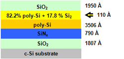 There is a thin interface between the poly-Si and SiO2 layer composed of 82.2% of poly-Si and 17.8% of SiO2.