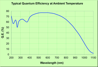 Back-illuminated linear CCD | QE = 63% at 250 nm; 76% at 650 nm; 55% at 850 nm |
