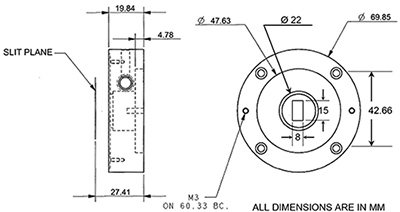 Mirror based fiber-coupler for 10 mm ferrule (part number J23078640). Contact us for information about SMA and FC adapters. Simple fiber-adapter for 0.25″ ferrule (part number 120F). | ||