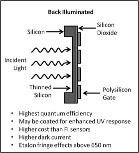 *FIUV- front illuminated UV enhanced, FIVS- front illuminated visible, BIUV- back illuminated UV enhanced, BIVS- back illuminated visible, BIDD- back illuminated deep depletion