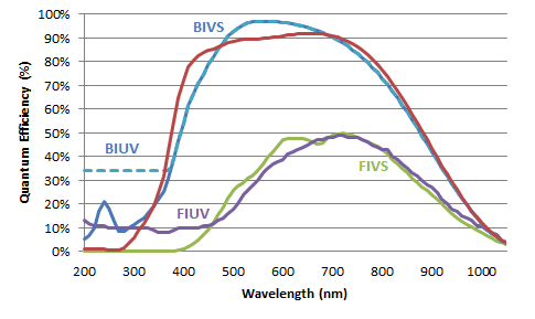 *FIUV- front illuminated UV enhanced, FIVS- front illuminated visible, BIUV- back illuminated UV enhanced, BIVS- back illuminated visible, BIDD- back illuminated deep depletion