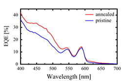 Internal Quantum Efficiency (IQE) and External Quantum Efficiency (EQE) measurements are indicators of the effectiveness of a photosensitive device such as those used in telecommunications and solar cells. EQE is the ratio of the charges generated to the total amount of photons incident on the surface; a larger EQE indicates a more efficient device. IQE is the ratio of the charges generated to the number of photons that hit the surface and are absorbed by the cell. Both EQE and IQE measurements are vital in the interrogation of light-responsive devices. In this setup, a tungsten light source is coupled to an iHR550 spectrometer to produce tunable light with narrow bandpass. The light is passed through a chopper and impinges on the device under test. The signal is analyzed using a lock-in amplifier synchronized with the chopper.