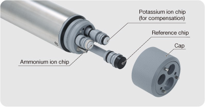 Sensor model | 7691*: Ammonium ion chip, 7692*: Potassium ion chip for compensation, 7211: Reference chip |