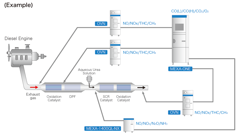 Measurement of nitrogen compounds (NO, NO2, N2O, NH3) is essential for evaluation of NOx after-treatment systems. MEXA-ONE can be easily configured to provide optimum measurement capability based on the testing objective.